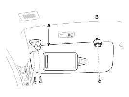 1. Loosen the mounting screws, then remove the sunvisor (A) and retainer (B).