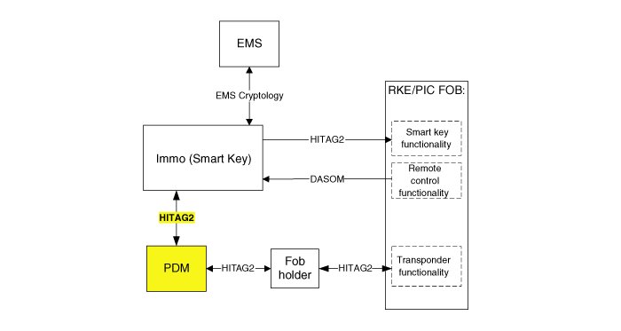 It collects information about vehicle status from other modules (vehicle speed, alarm status, driver door open.), read the inputs (e.g. SSB, Lock Button and PARK position Switch), controls the outputs (e.g. exterior and interior antennas), and communicates with others devices via the CAN network as well as a single line interfaces.