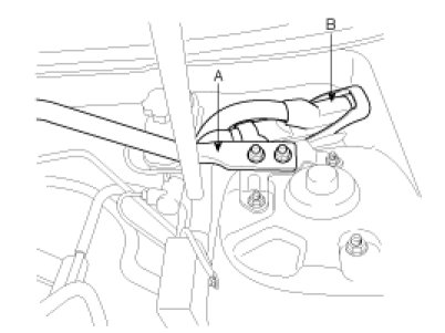 6. Disconnect the brake tube (B) from the master cylinder by loosening the tube flare nut.