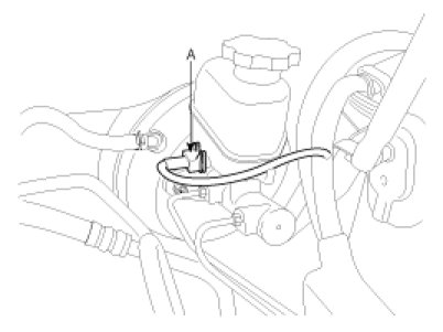 4. Disconnect the brake fluid level switch connector (A) from the reservoir.