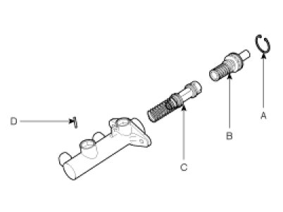 5. Remove the pin (D) with the secondary piston(C) pushed completely using a screwdriver. Remove the secondary piston assembly (C).