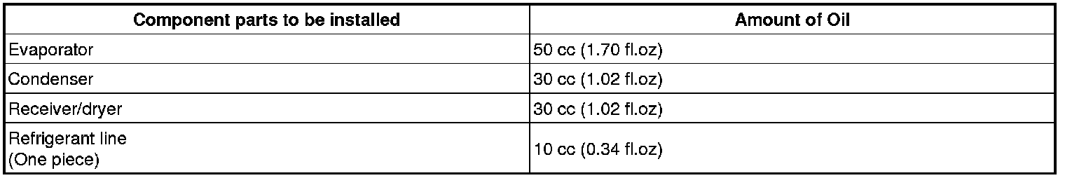 2. Compressor (PAG) oil varies according to compressor model. Be sure to use oil specified for the model of compressor.