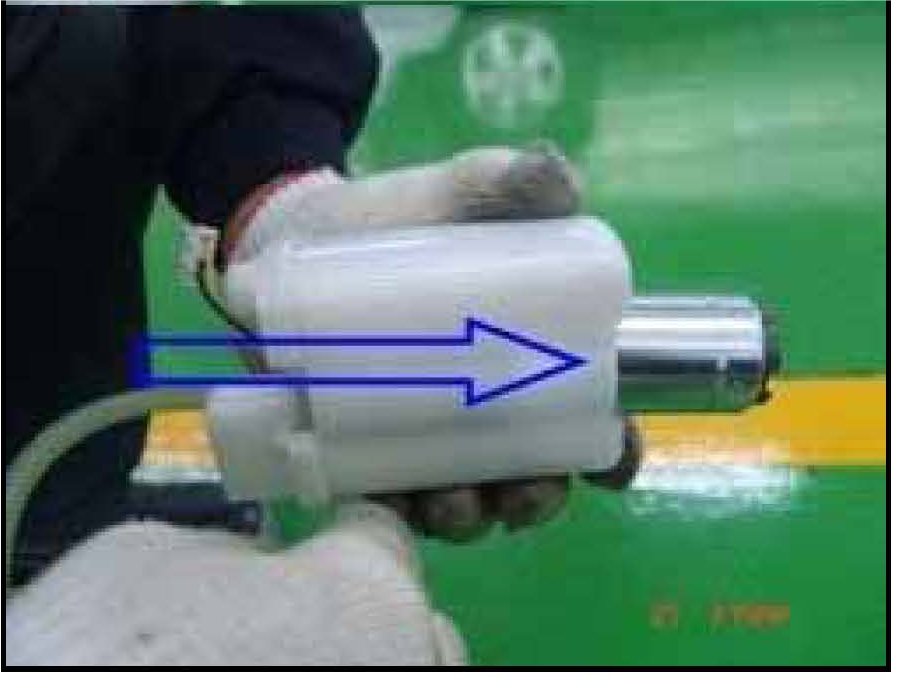 15. Remove the fuel pump (N) from the fuel filter by pushing it in the arrow direction.