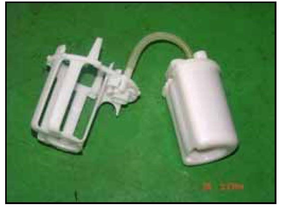11. Once the fuel pump top plate is detached, remove the fuel filter by releasing the 2 holding hooks. (There is one at "J" and another hook located at the opposite side of "J").
