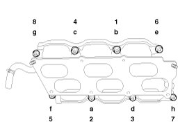- Tighten the intake manifold bolts, in several passes as below.