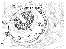 2. Insert the special tool (09411-1P000) in the clutch disc to prevent the disc from shifting.