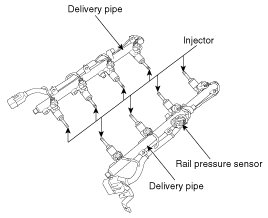 In case of removing the high pressure fuel pump, high pressure fuel pipe, delivery pipe, and injector, there may be injury caused by leakage of the high pressure fuel. So don't do any repair work right after engine stops.