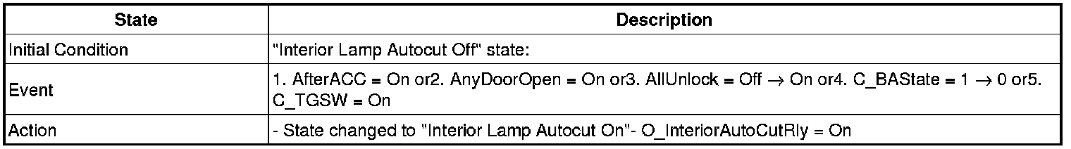 4. Transitions from "Interior Lamp Auto cut Power On" state: