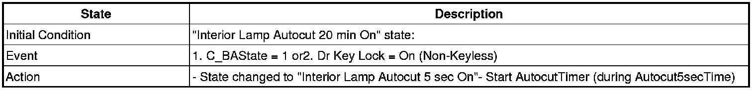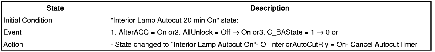 3. Transitions from "Interior Lamp Auto cut Power 20 min On" state: