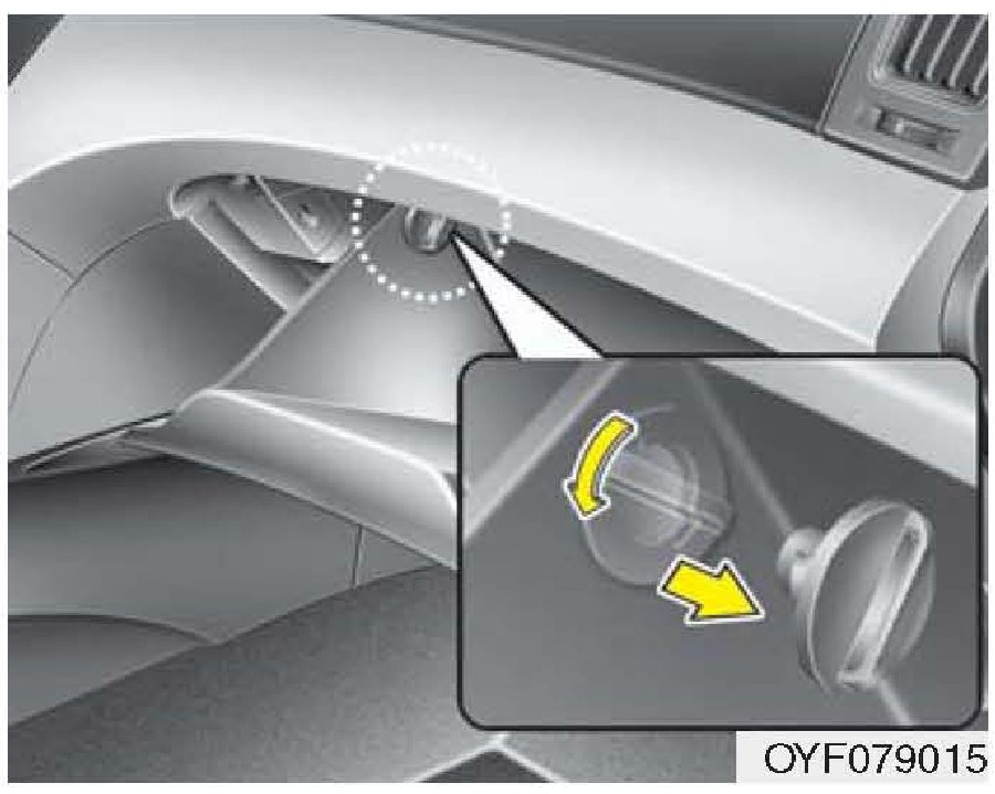 2. With the glove box open, remove the stoppers by turning them counterclockwise on both sides.