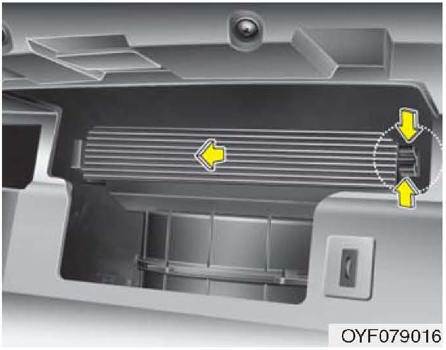 If the vehicle is operated in the severely air-polluted cities or on dusty rough roads for a long period, it should be inspected more frequently and replaced earlier. When you, the owner, replace the climate control air filter, replace it performing the following procedure, and be careful to avoid damaging other components.