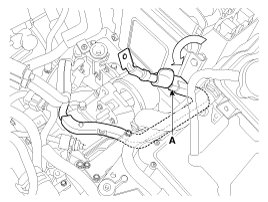 9. Pull the battery plus cable (A) toward the engine room to make space for the bracket bolt removal.