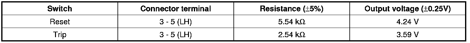 1. Check the audio remote control switch for resistance between No.3 and No.5 terminals in each switch position.