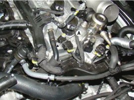 7. Remove the PCV(Positive Crankcase Ventilation) hose(A).