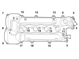 (4) Tighten the cylinder head cover bolts with the order and steps.