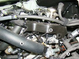 6. Remove the engine coolant temperature sensor (C).