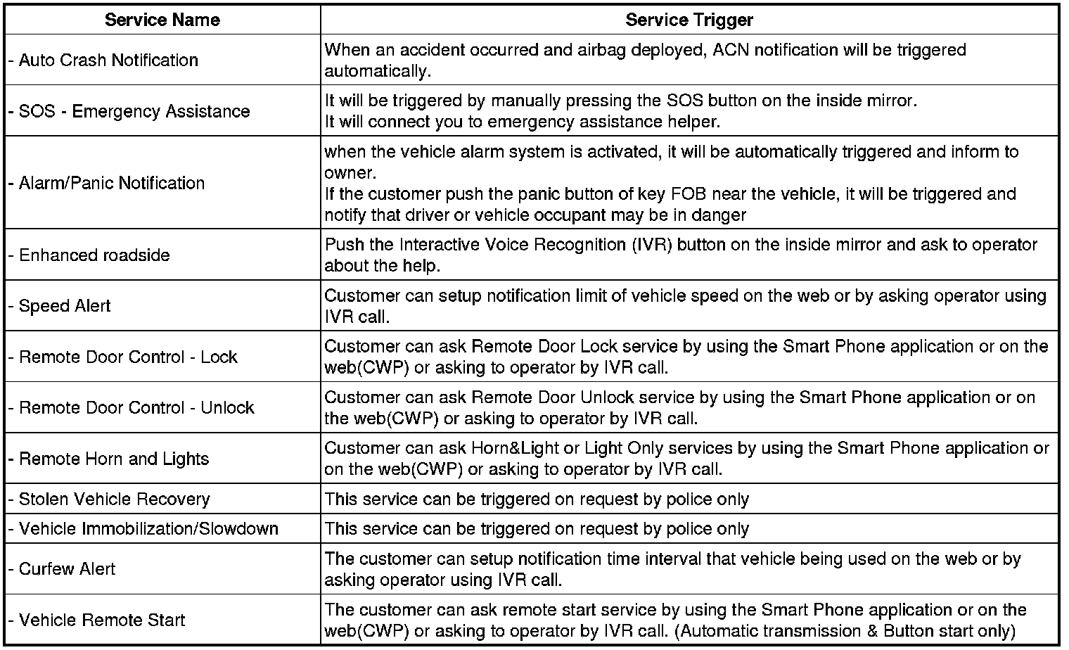 4. Control BCM by Call Center Service : Door Lock/Unlock, Horn/Light, Remote Start/Stop be operate by Service.