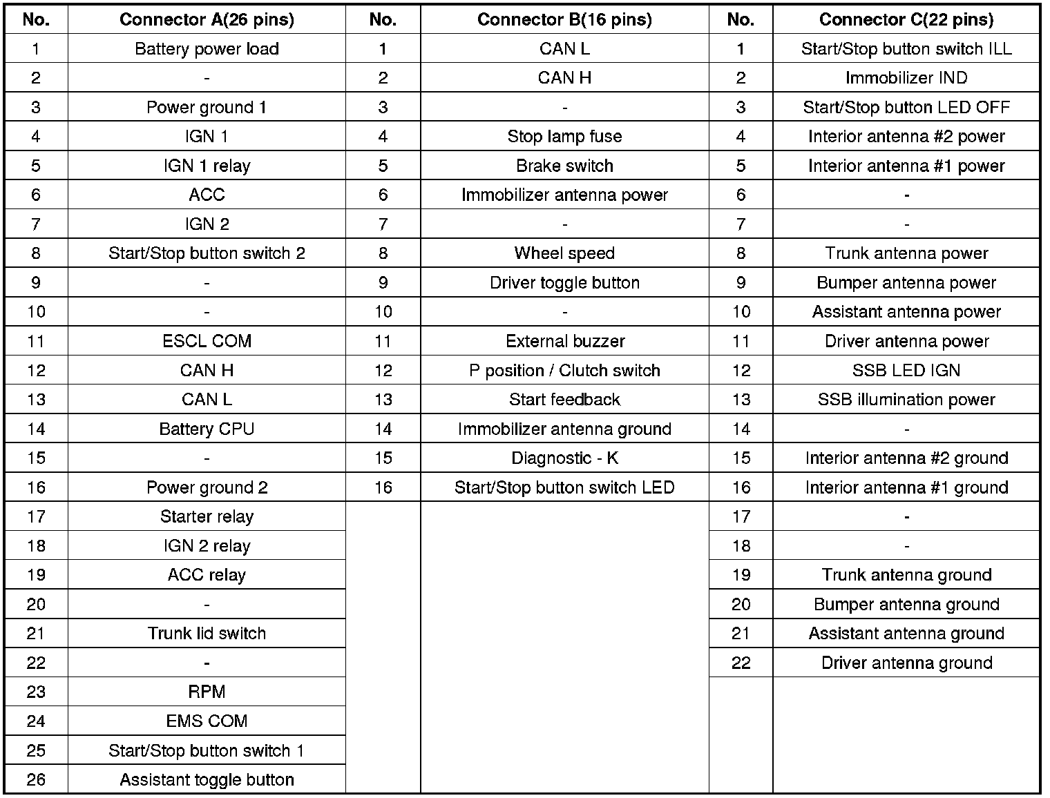 Connector Pin Information