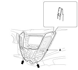 1. Using a screwdriver or remover, remove the center facia panel (A).