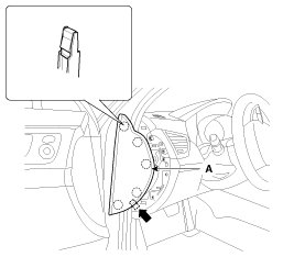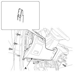 1. Using a screwdriver or remover, remove the cluster fascia lower panel (A).
