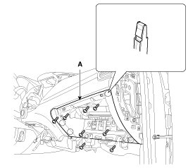 3. After loosening the mounting screws, then remove the crash pad lower panel (A).