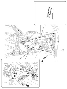 1. Using a screwdriver or remover, remove the crash pad side cover (A).