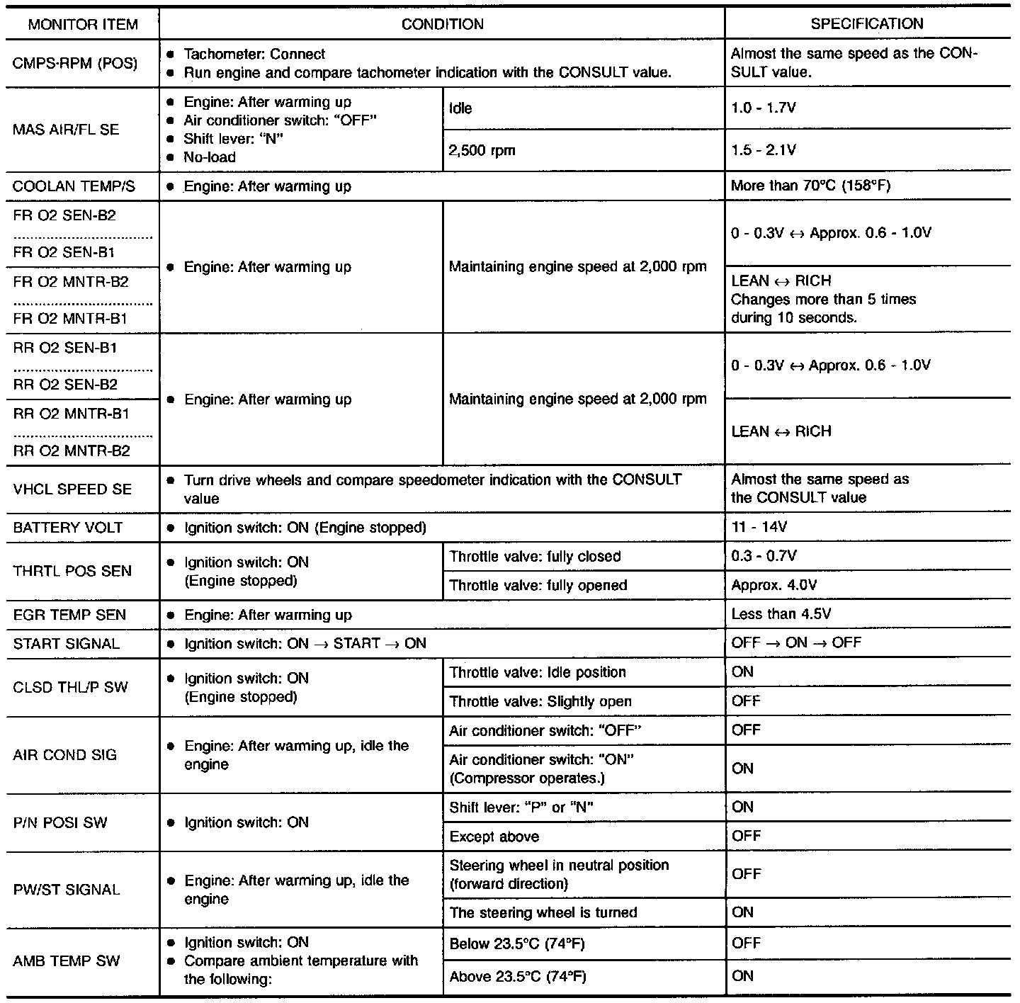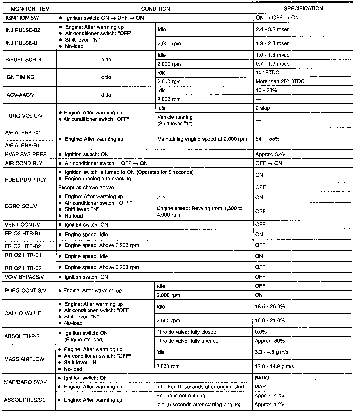 - Specification data are output/input values which are detected or supplied by the ECM at the connector.
