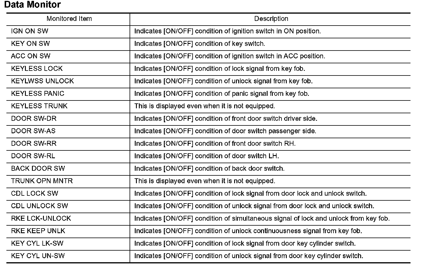 CONSULT-II Application Items