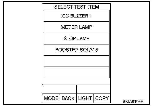 2. Touch any of "ICC BUZZER 1", "METER LAMP", "STOP LAMP" and "BOOSTER SOL/V 3" on selection screen.