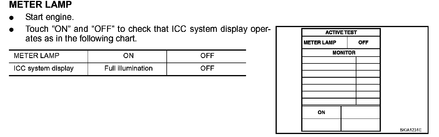 - Active test cannot be started while ICC system warning indicator illuminates.
