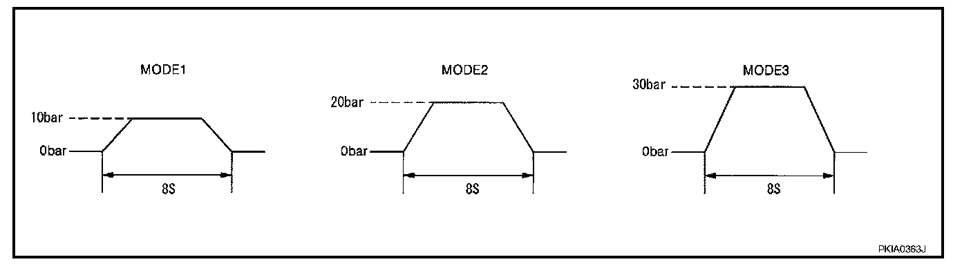 - Touch any of "MODE 1", "MODE 2", "MODE 3" to check that following operation condition is caused by operating monitor and brake pedal.