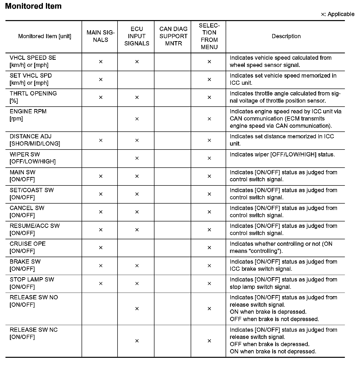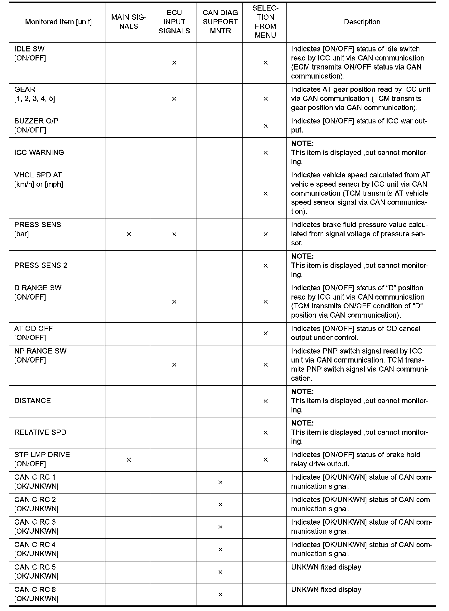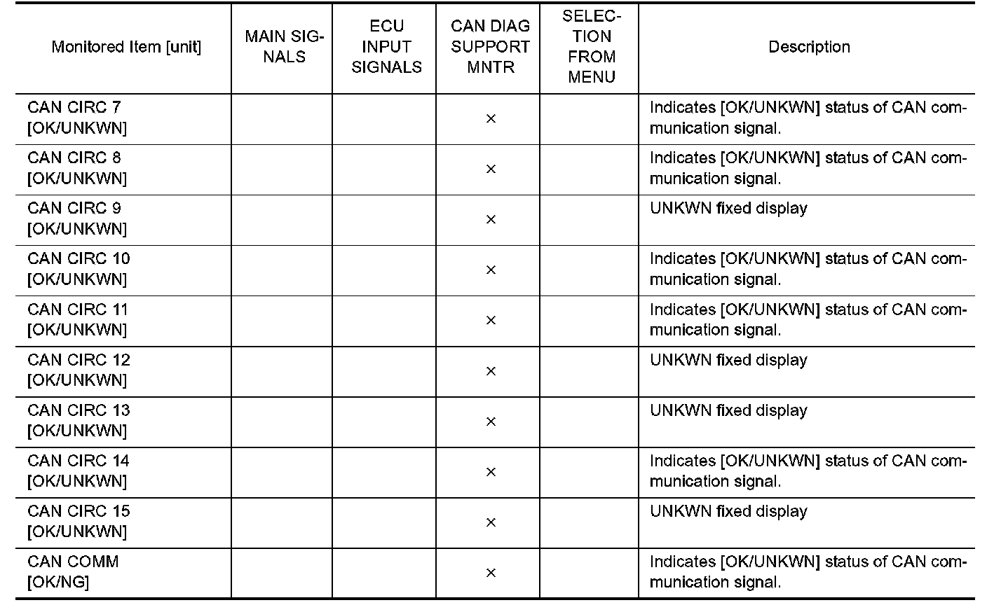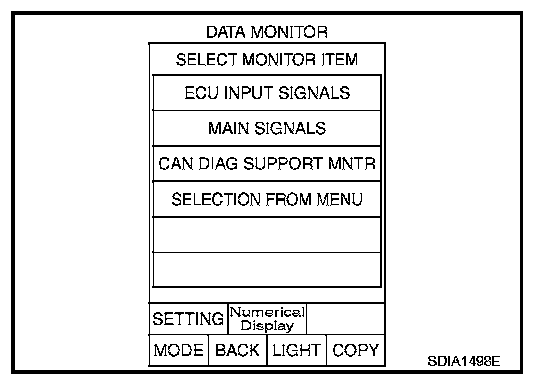 2. Touch any of "ECU INPUT SIGNALS", "MAIN SIGNALS", "CAN DIAG SUPPORT MNTR", and "SELECTION FROM MENU" on selection screen.