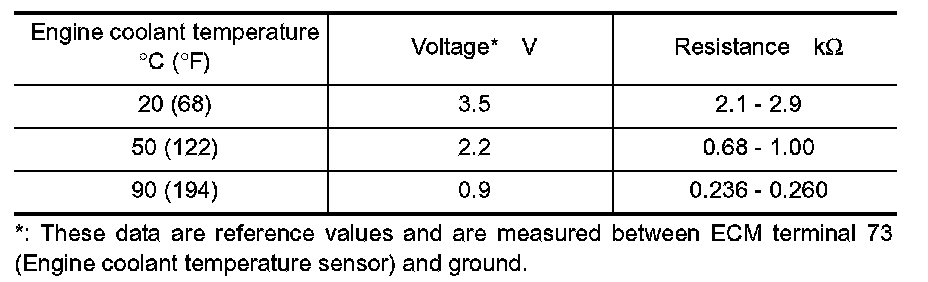 The engine coolant temperature sensor is used to detect the engine coolant temperature. The sensor modifies a voltage signal from the ECM. The modified signal returns to the ECM as the engine coolant temperature input. The sensor uses a thermistor which is sensitive to the change in temperature. The electrical resistance of the thermistor decreases as temperature increases.