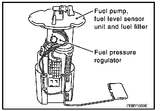 The fuel level sensor is mounted in the fuel level sensor unit. The sensor detects a fuel level in the fuel tank and transmits a signal to the unified meter and A/C amp. The unified meter and A/C amp. sends the fuel level sensor signal to the ECM through CAN communication line.