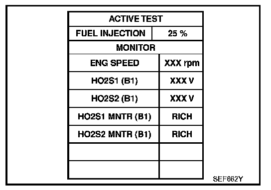 7. Check "HO2S2 (B1)/(B2)" at idle speed when adjusting "FUEL INJECTION" to ±25%.
