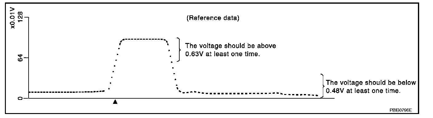 (Depress and release accelerator pedal as soon as possible.) The voltage should be above 0.63V at least once during this procedure.