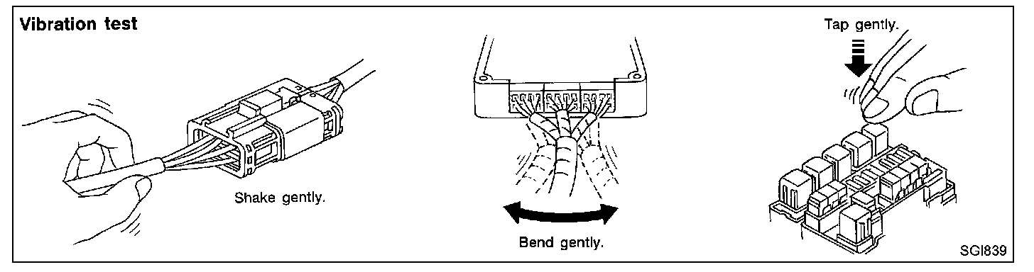 Determine which connectors and wiring harness would affect the electrical system you are inspecting. Gently shake each connector and harness while monitoring the system for the incident you are trying to duplicate. This test may indicate a loose or poor electrical connection.