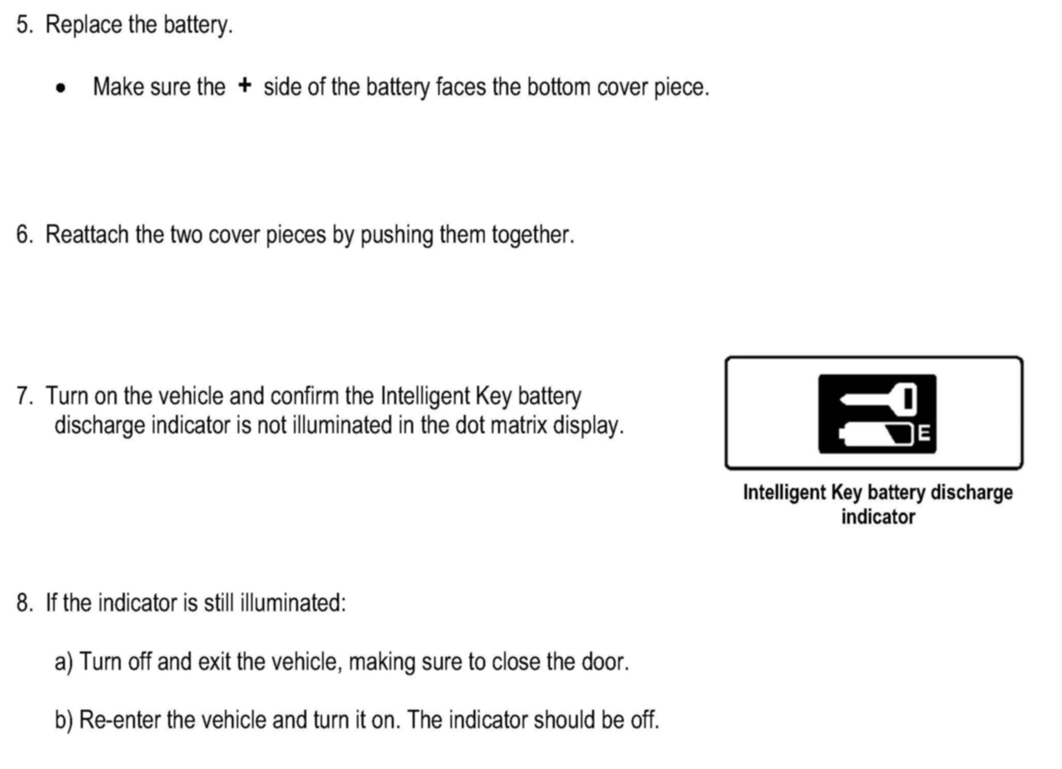 INTELLIGENT KEY BATTERY REPLACEMENT AND BATTERY DISCHARGE INDICATOR RESET