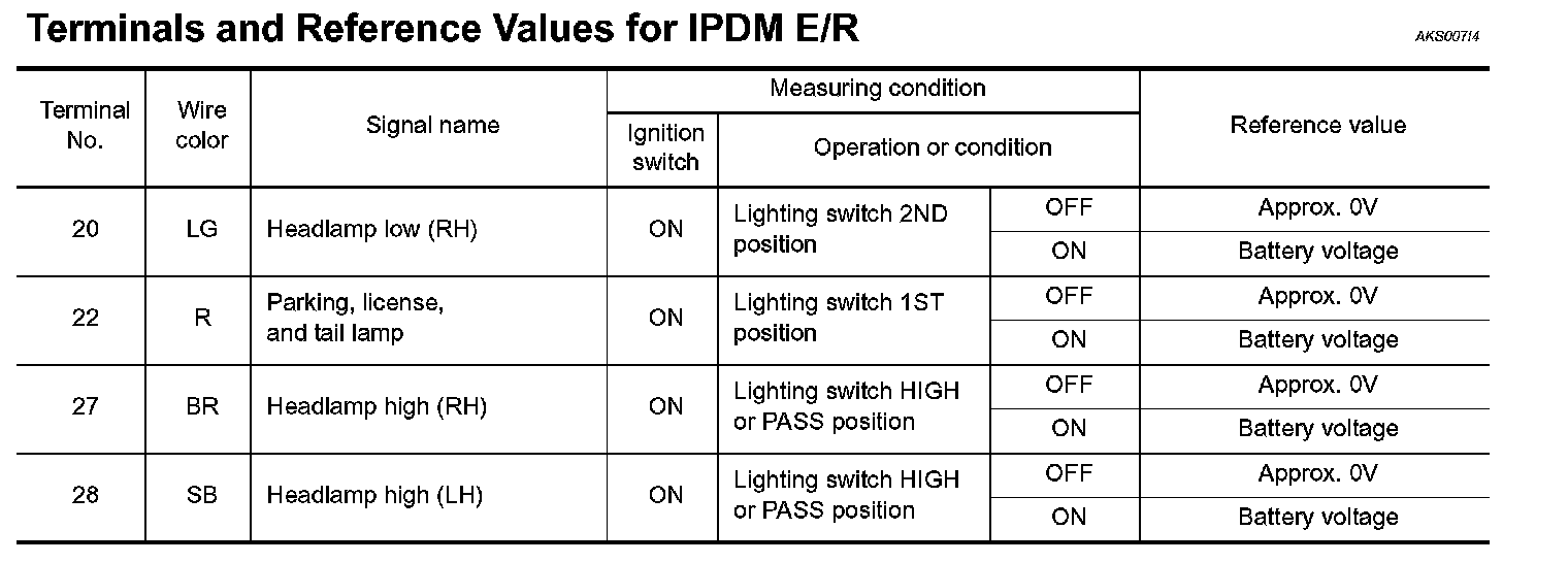 Terminals And Reference Values For IPDM E/R Part 1: