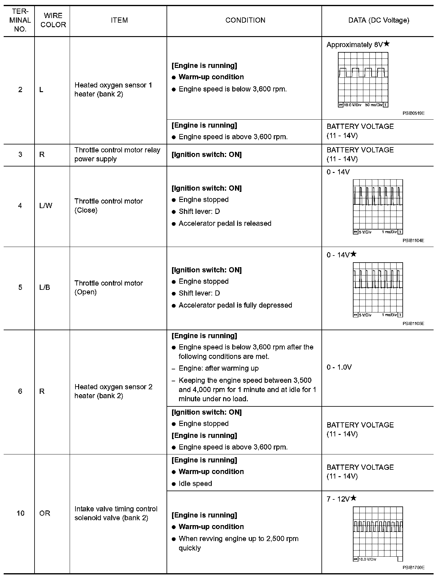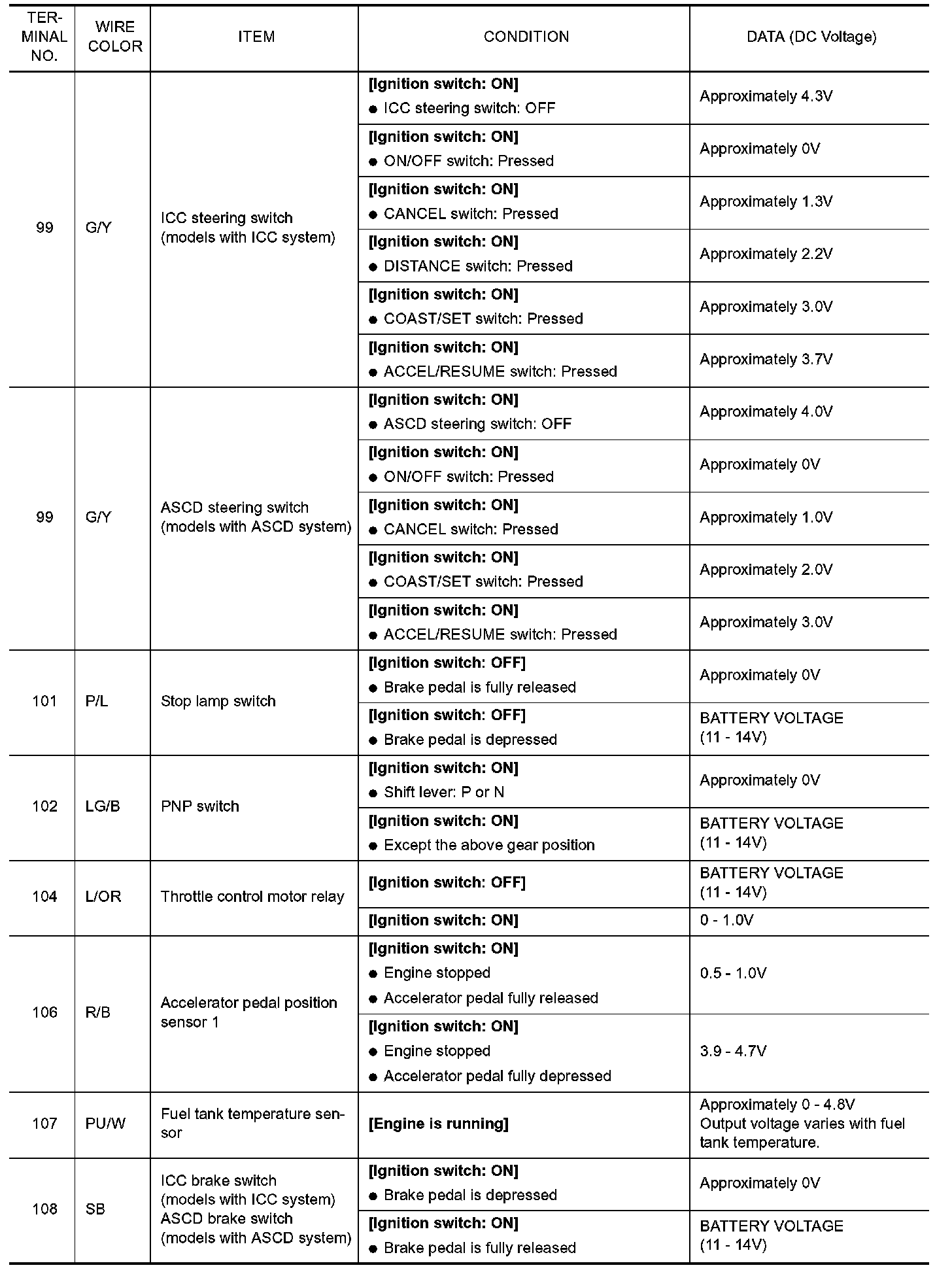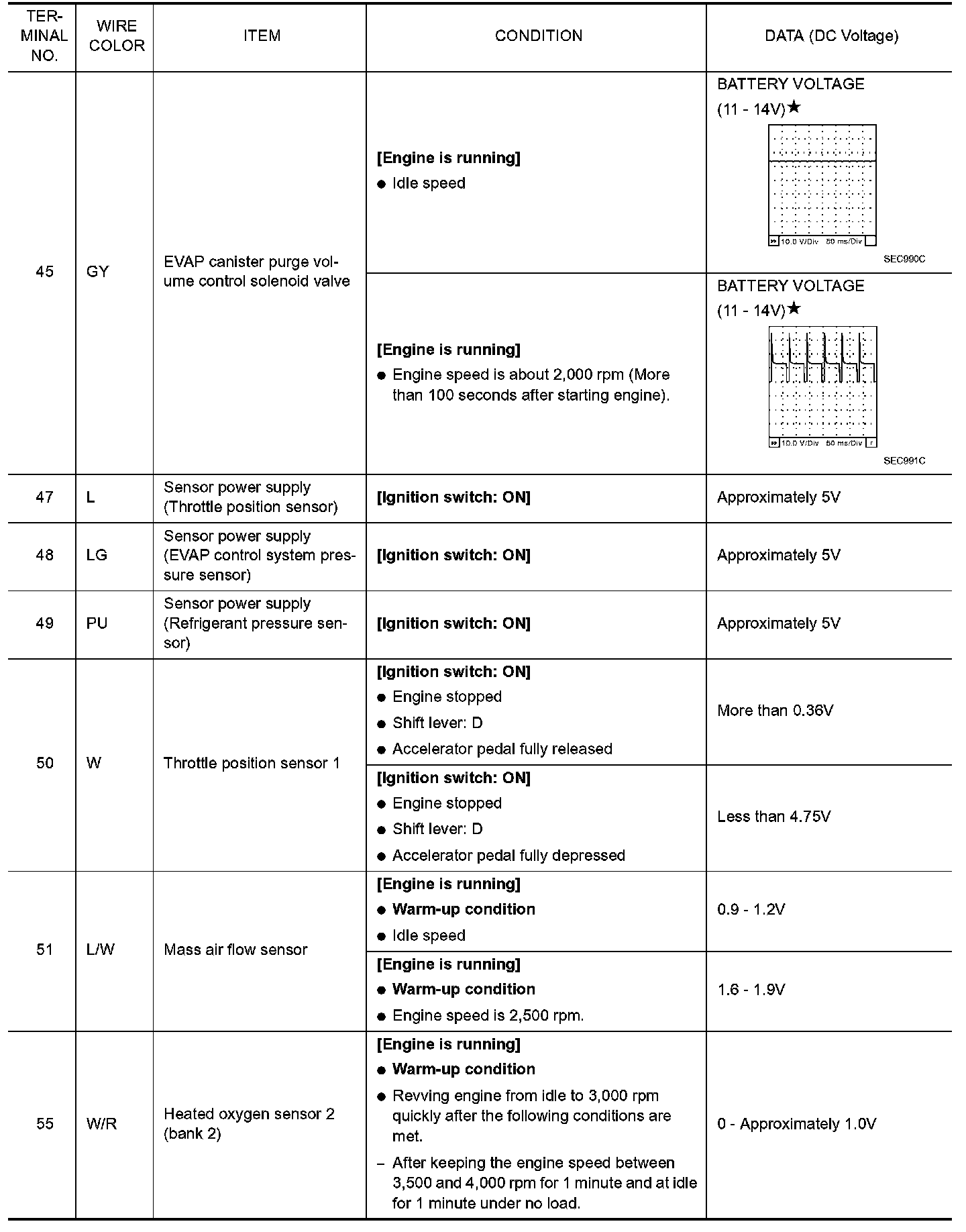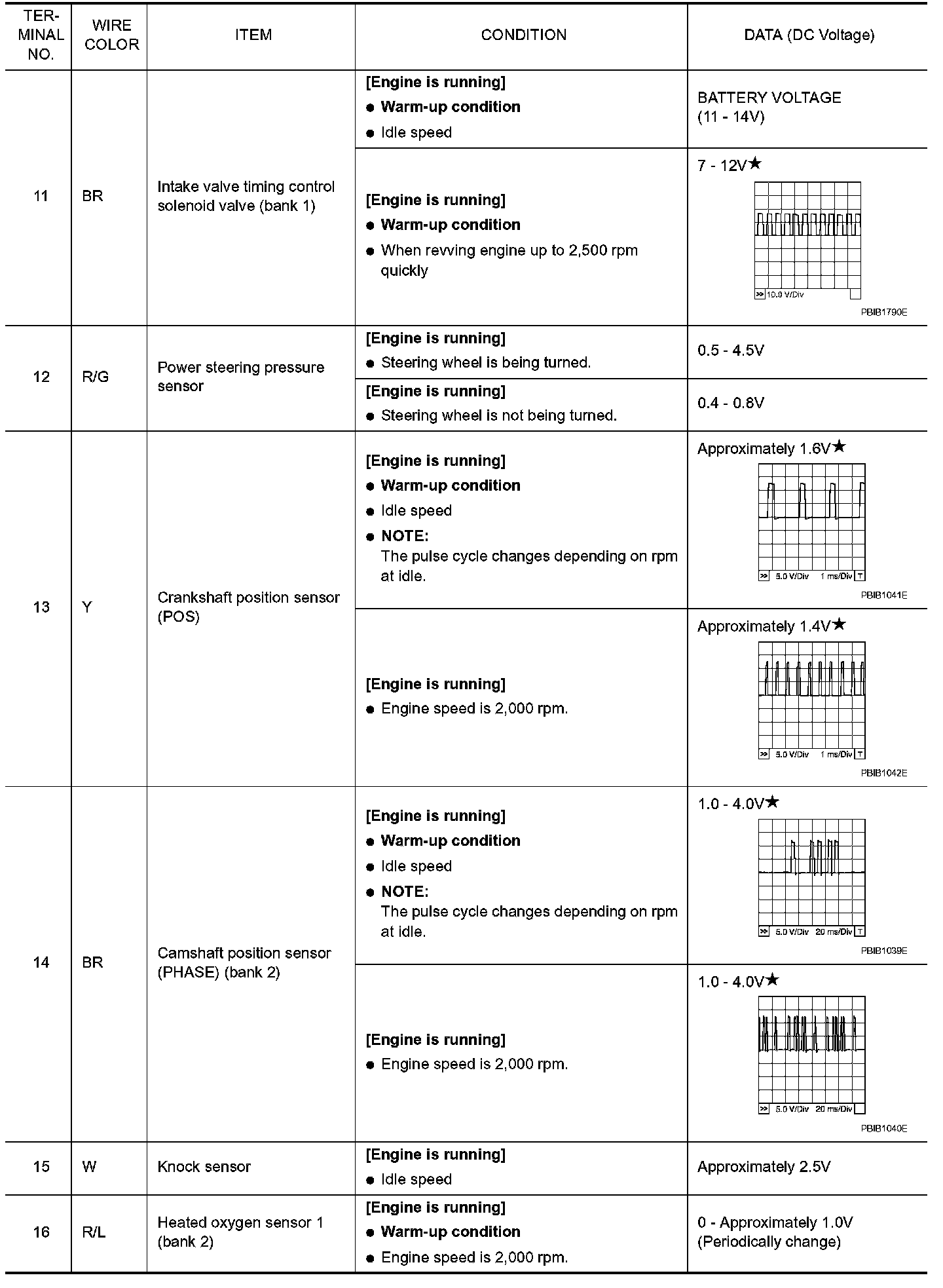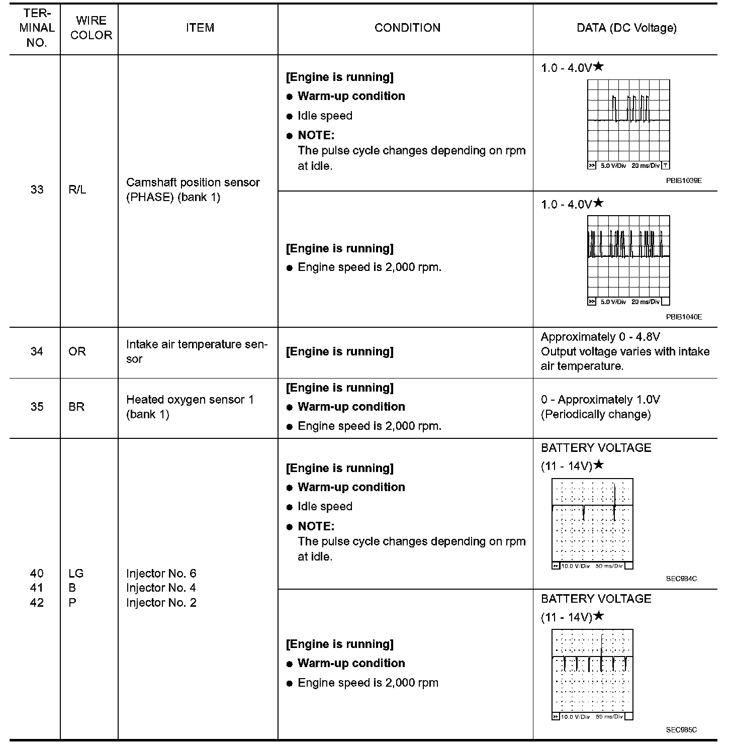 Specification data are reference values and are measured between each terminal and ground. Pulse signal is measured by CONSULT-II.