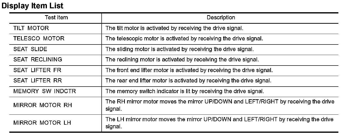 If active test is performed, reset seat memory and key fob interlock drive positioner after performing work.