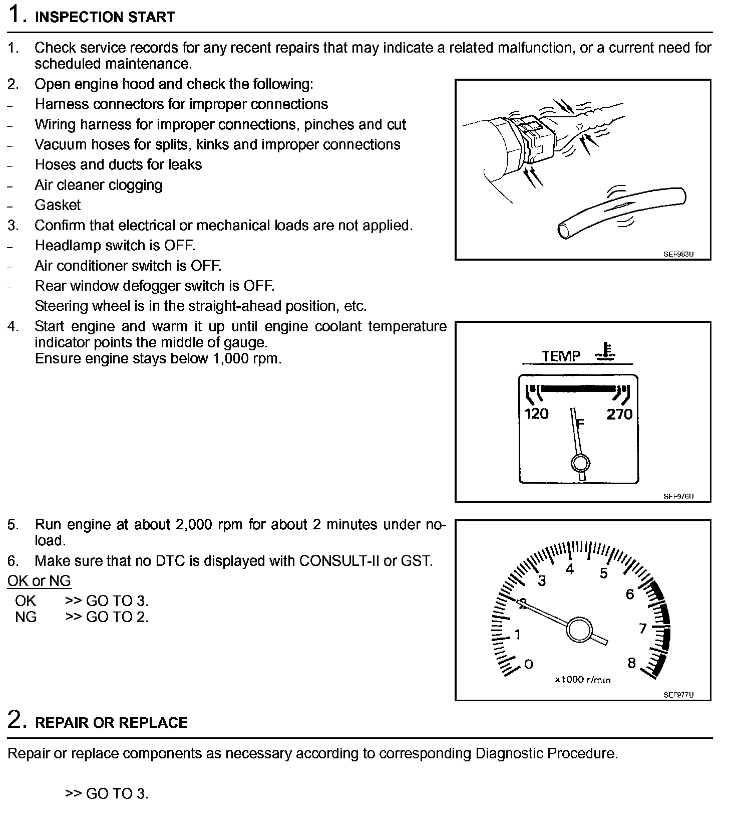 2. On air conditioner equipped models, checks should be carried out while the air conditioner is OFF.
