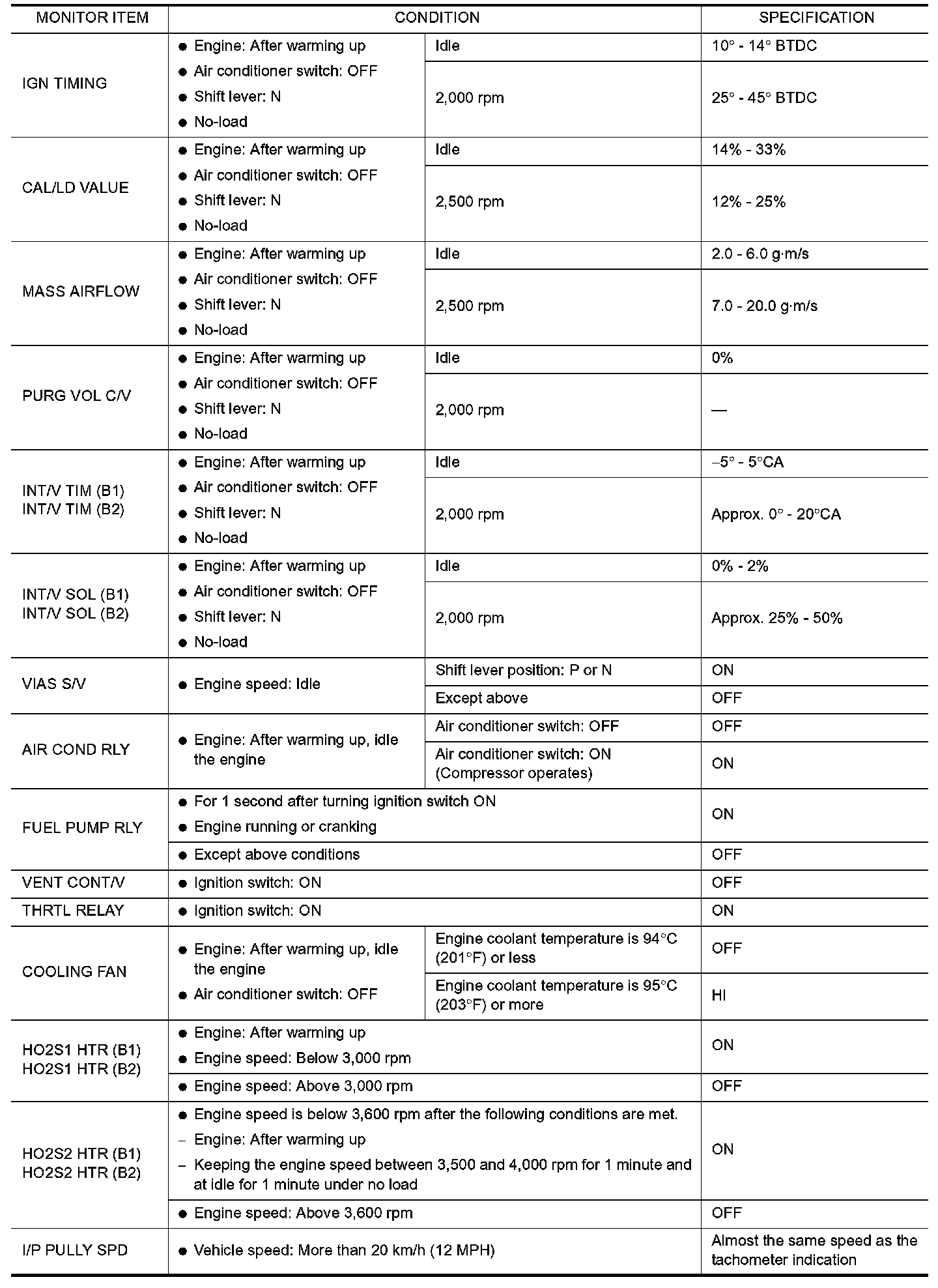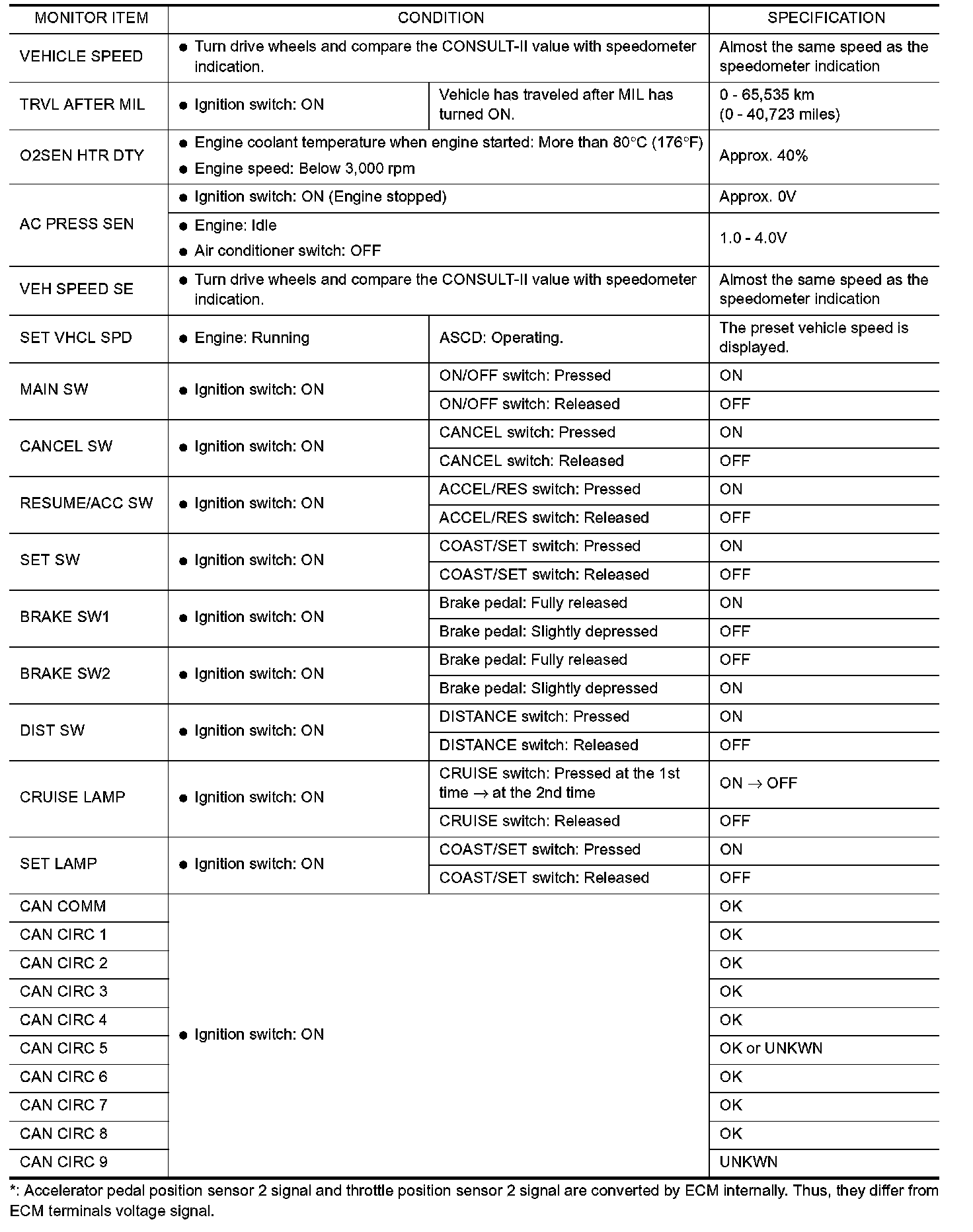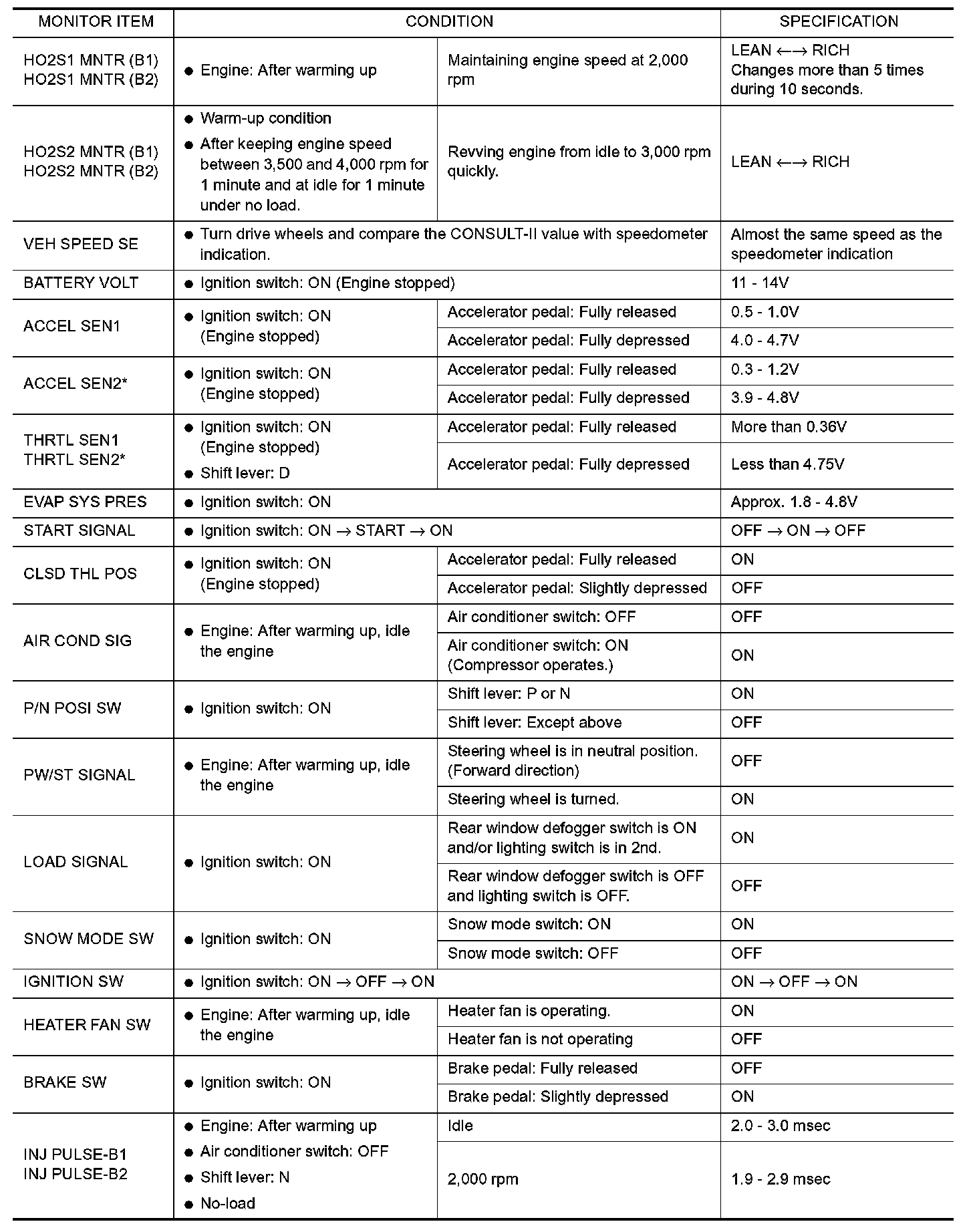 CONSULT-II Reference Value in Data Monitor Mode