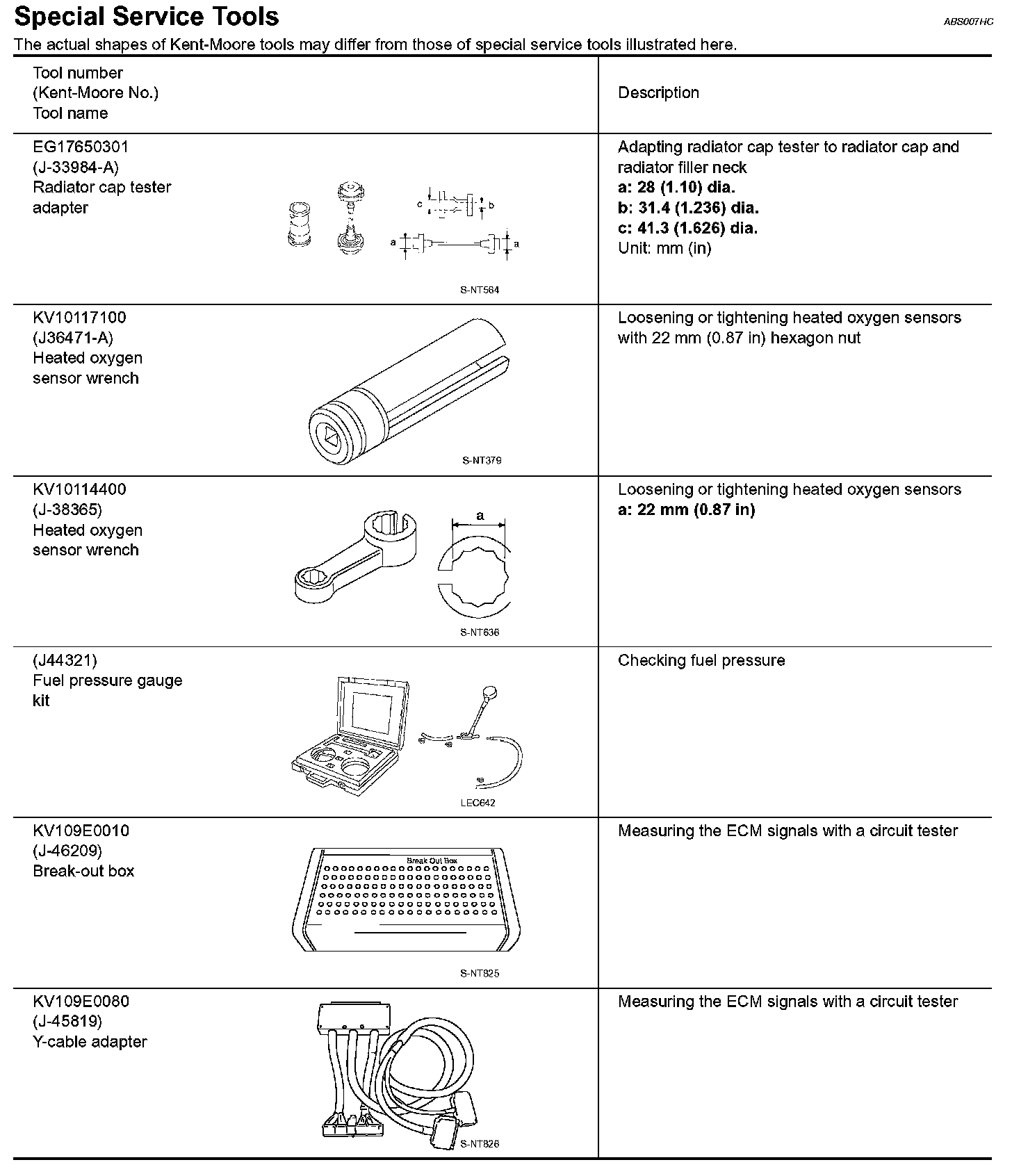 Special Service Tools: