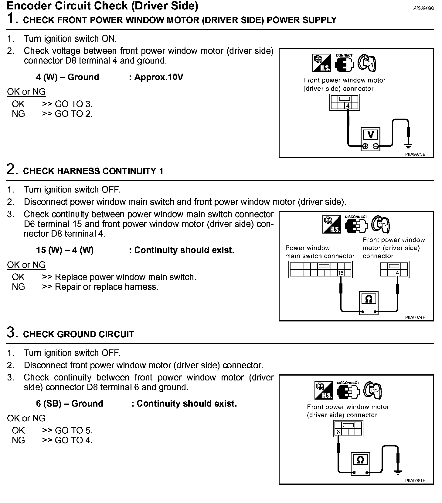 Encoder Circuit Check (Driver Side) (Steps 1 - 3):