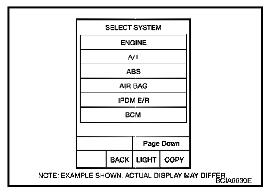 If "BCM" is not indicated, refer to "CONSULT-II Data Link Connector (DLC) Circuit".
