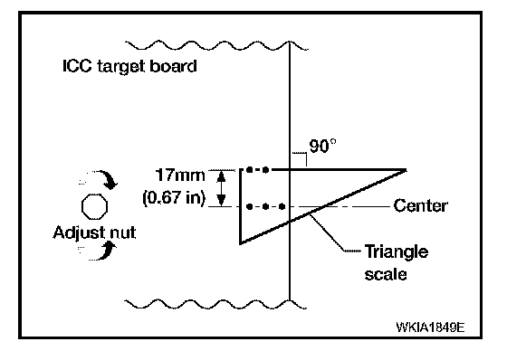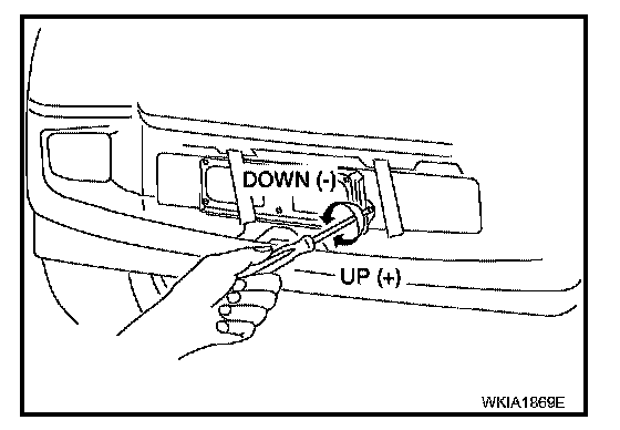 CAUTION: Turn the screw slowly. The value on the CONSULT-II is slower than the actual movement of the ICC sensor. Wait 2 seconds between each adjustment. Also, during adjustment work, do not block the ICC sensor lens with your hand or body. In that case, there are times when aiming cannot be conducted correctly.