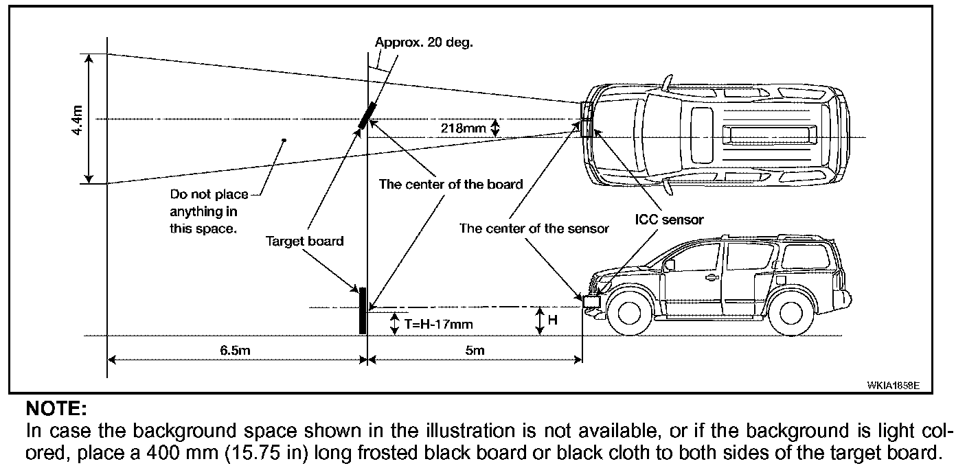 NOTE: In case the background space shown in the illustration is not available, or if the background is light colored, place a 400 mm (15.75 in) long frosted black board or black cloth to both sides of the target board.