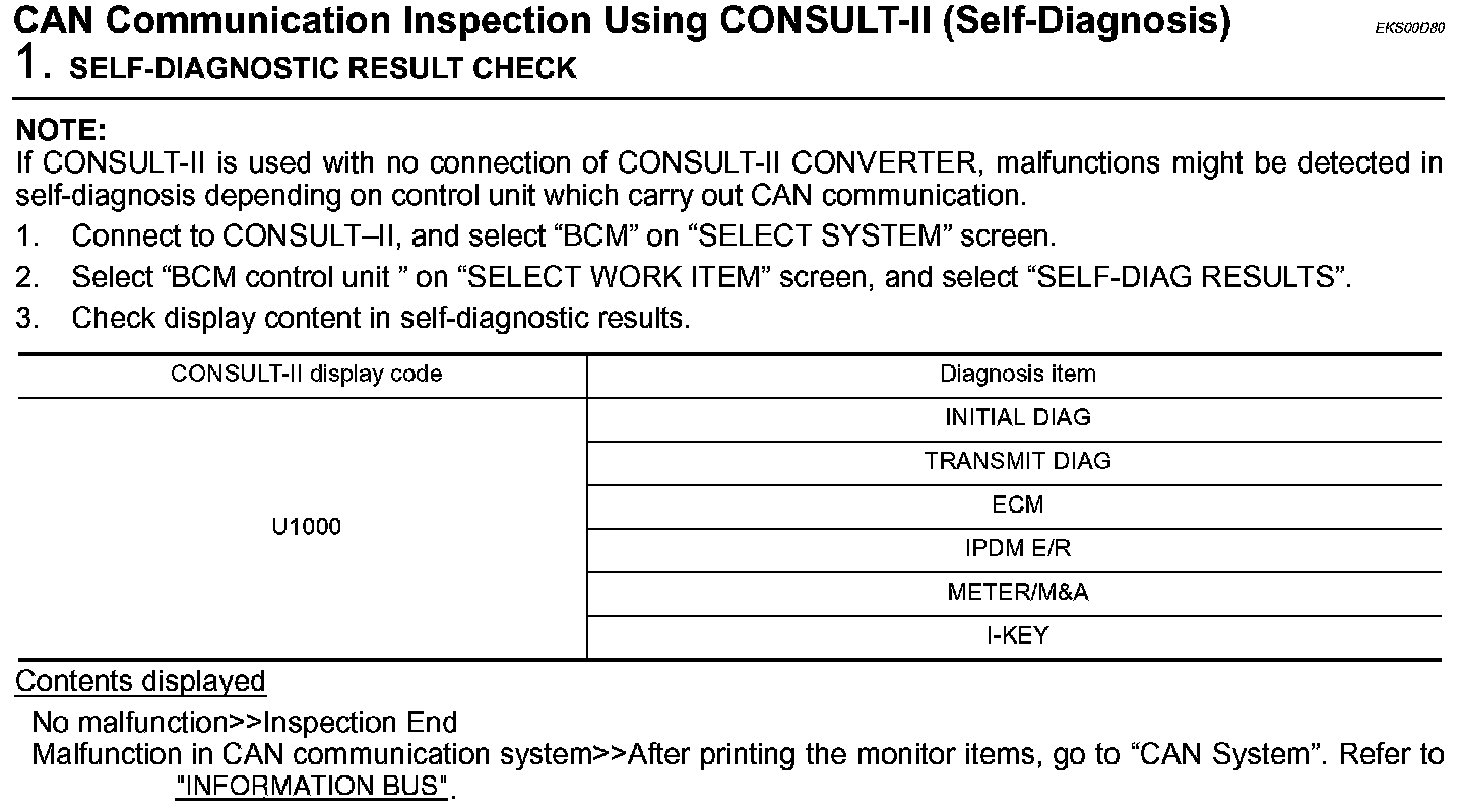 CAN Communication Inspection Using CONSULT-II (Self-Diagnosis):