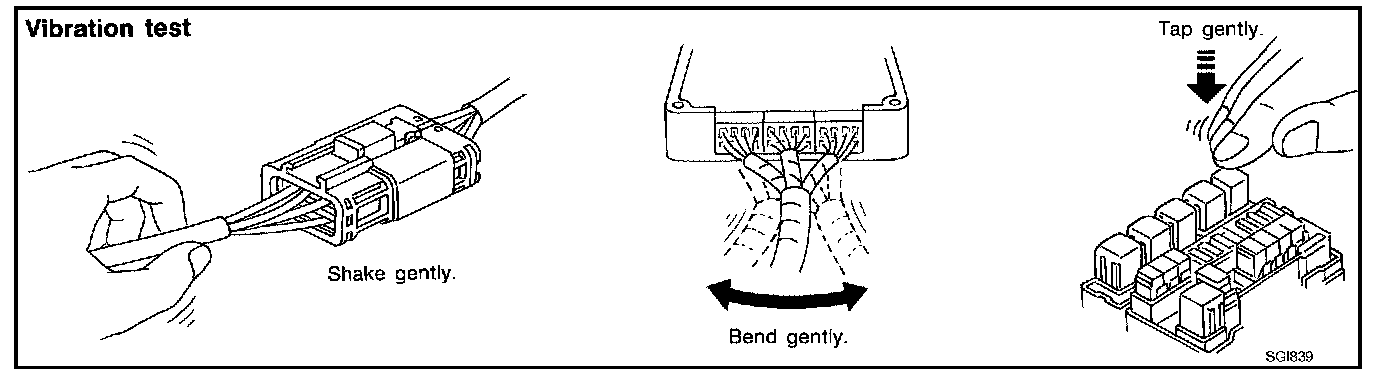 Determine which connectors and wiring harness would affect the electrical system you are inspecting. Gently shake each connector and harness while monitoring the system for the incident you are trying to duplicate. This test may indicate a loose or poor electrical connection.